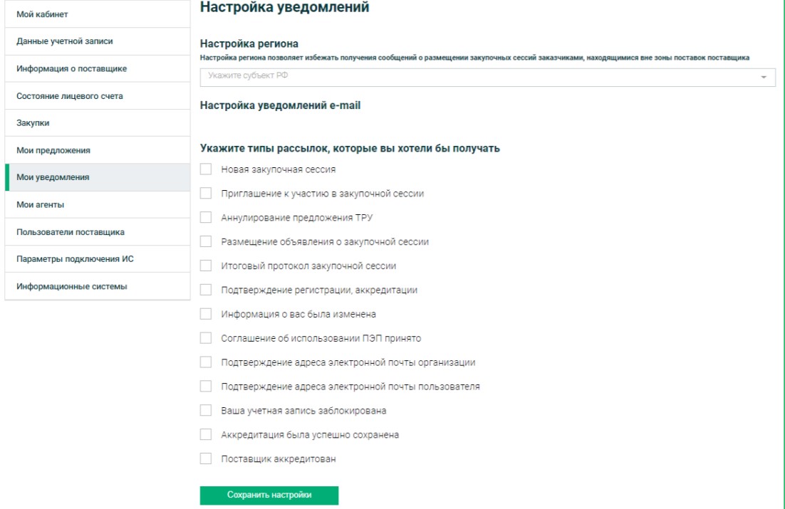 Из-за жалоб пользователей разработчики отключили обязательные рассылки в агрегаторе. Теперь участники закупок смогут самостоятельно настраивать уведомления. В личном кабинете можно выбрать, о каких событиях вы хотите знать, а также установить регион работы. Все уведомления будут приходить на электронную почту, которая привязана к аккаунту.