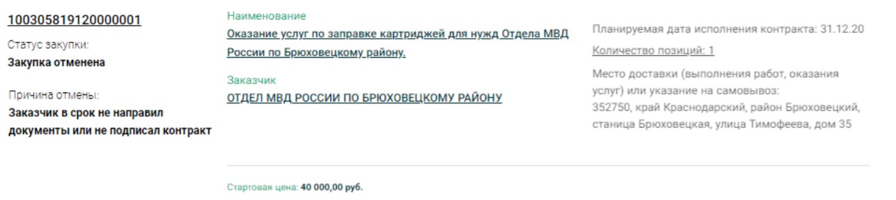 Если организатор закупки отменит ее на любой стадии, вы можете посмотреть, почему это произошло. Причину отмены покажут в личном кабинете и общем списке закупок.