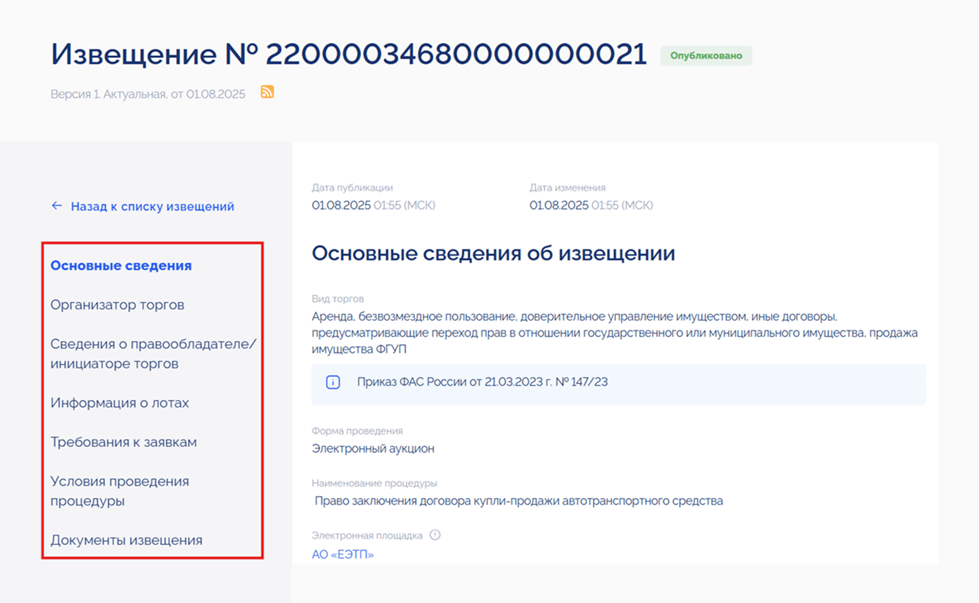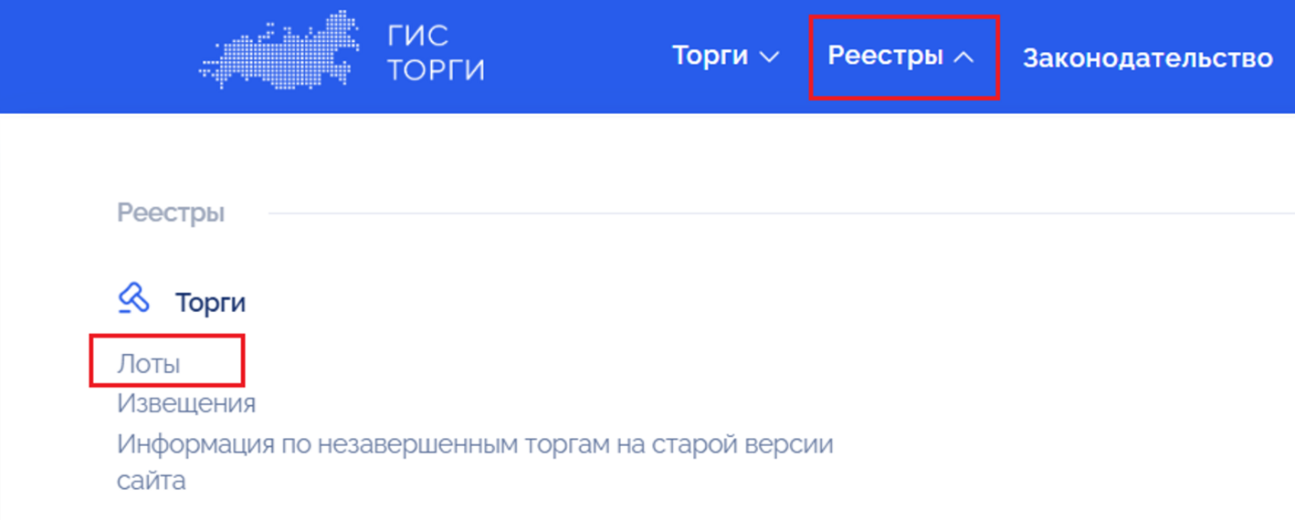 Найти торги по Приказу ФАС можно на официальном портале ГИС Торги. Для этого достаточно открыть сайт и перейти в реестр лотов.