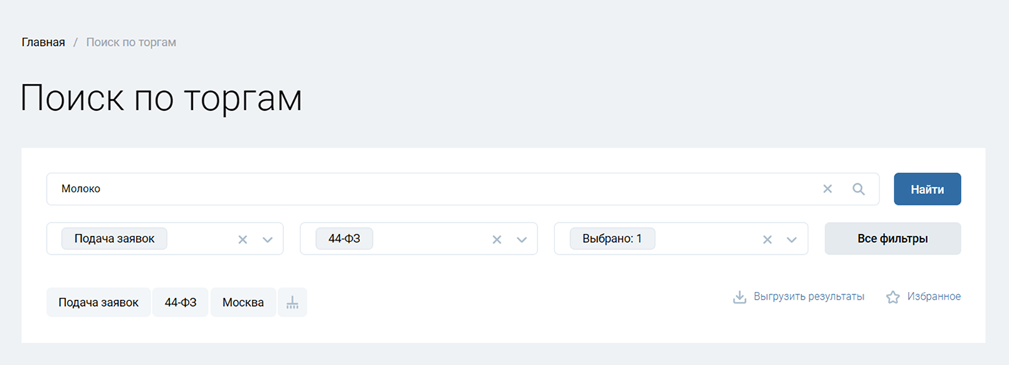 Найдите подходящую вам закупку с помощью строки поиска и фильтров. Например, в конкретной секции, в вашем регионе или с привлекательной начальной ценой. Для более точного поиска рекомендуем использовать специализированный сервис. Например, Контур.Закупки.