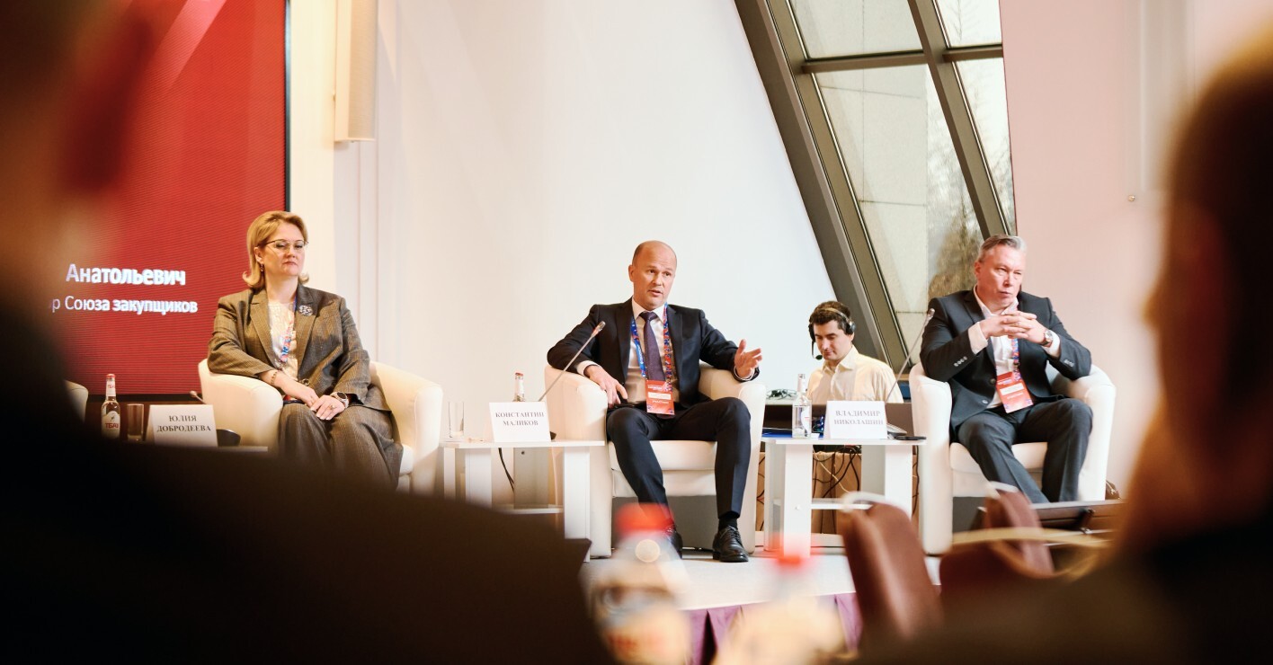 В дискуссии участвовали руководители департаментов закупок крупных заказчиков — РЖД, Роскосмоса, Ростеха и других.