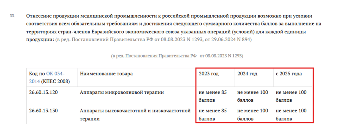 Для некоторых видов продукции установлены динамические требования с поэтапным повышением порога баллов: минимально необходимое количество баллов увеличивается ежегодно.