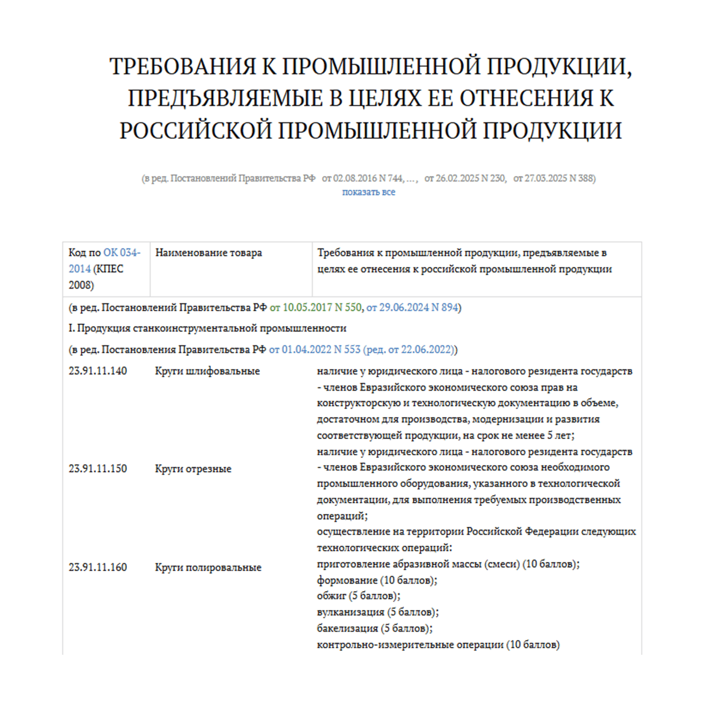 Фиксированные требования представлены в виде неизменной минимальной суммы баллов. Например, для позиции 20.42.15 «Парфюмерно-косметическая продукция, предназначенная для обеспечения гигиены…» требуется не менее 200 баллов.