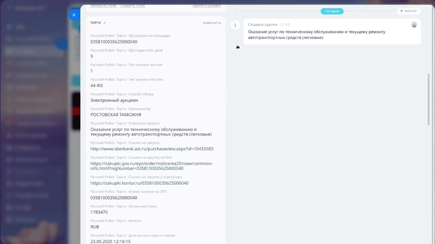 - Появляются дубли тендеров — разные сотрудники заносят в CRM одну и ту же закупку.