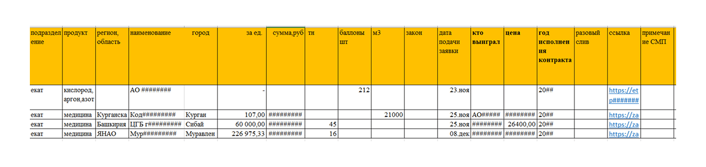 Обычно сотрудники заполняют таблицы вручную. По каждому найденному тендеру важно указывать как минимум: