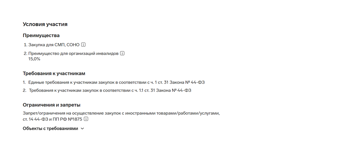 - тендеры с требованиями по ст. 31 44-ФЗ или с требованиями об отсутствии в реестре недобросовестных поставщиков (РНП);