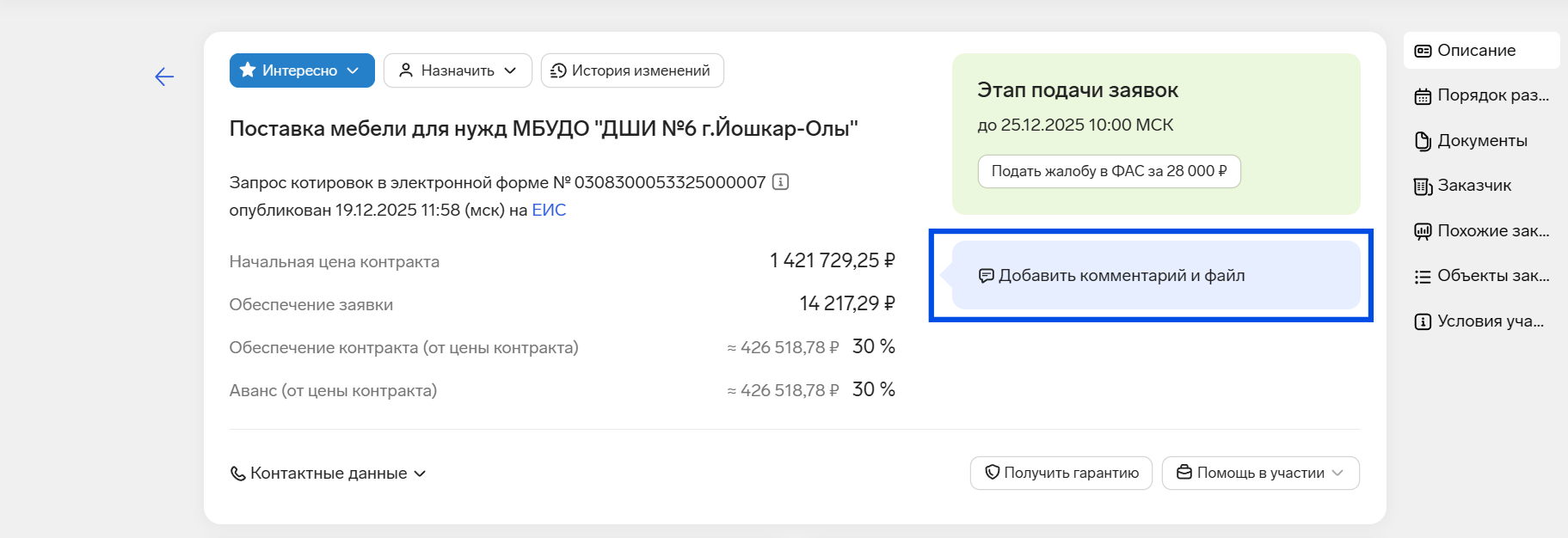 Чтобы упростить анализ тендеров по 44-ФЗ, вынесли всю важную информацию в карточку закупки.