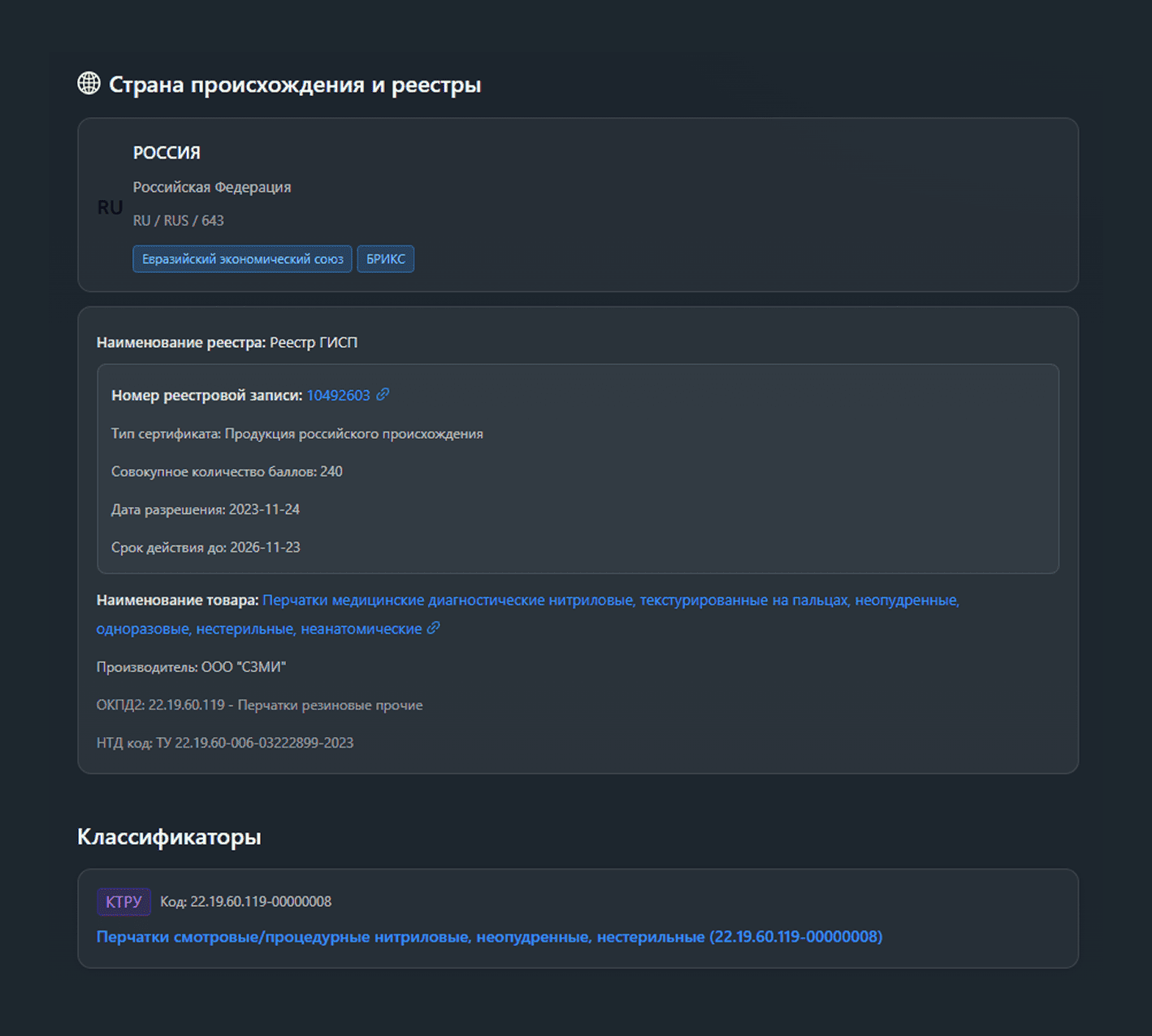 Если верификация пройдет успешно, позиция появится в каталоге под уникальным идентификационным номером (УИНТРУ). Если пользователь допустил ошибки, оператор вернет заявку на доработку.